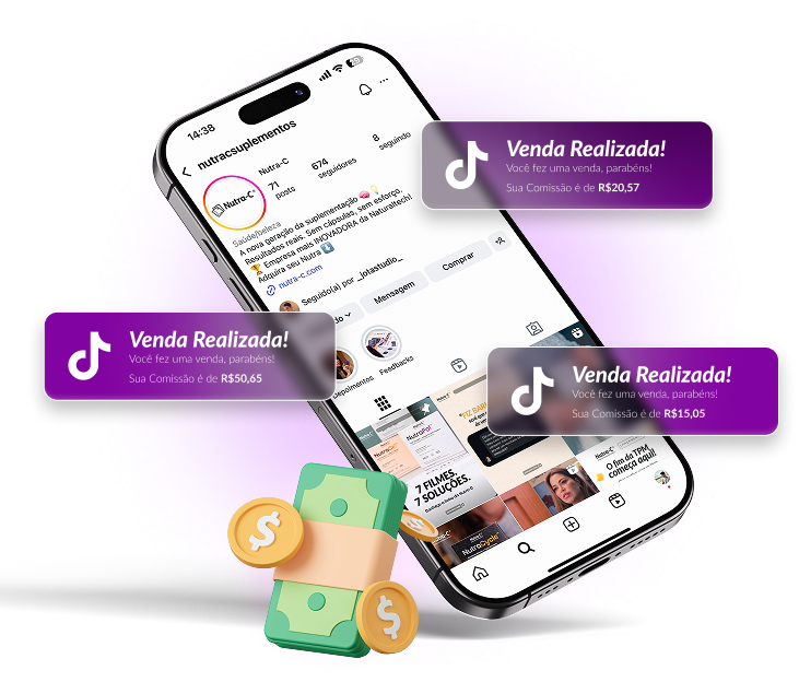 Receba uma comissão de 20% a cada venda gerada no TikTok. transforme o engajamento em recompensa.