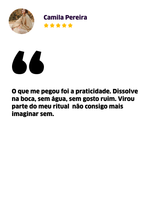 Esse é um dos maiores diferenciais do NutraZen. Por ser um filme orodispersível que se dissolve em segundos, não precisa de água, copo ou nenhum preparo. Cabe no bolso, na necessaire, na carteira. Você mantém o ritual onde estiver sem desculpa para quebrar a sequência.